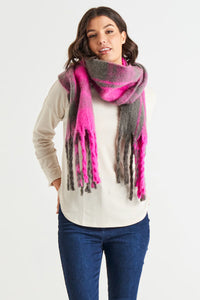 Betty Basics Lillian Fluffy Scarf Magenta Plaid
