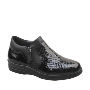 Pure Comfort Saara Black Croco Patent Side Zip Shoe