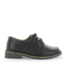 Classic girls wide fit black lace up school shoes Janna from Wilde with matching eyelets. The leather upper and lining, with flexible outsole make this pair a delight to wear throughout the day’s adventures.